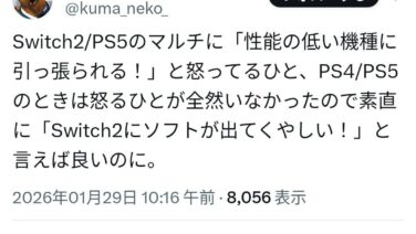 ゲハ X「Switch2のマルチで怒ってる人は素直にSwitch2にソフト出て悔しいと言えばいいのに」←バズりまくる