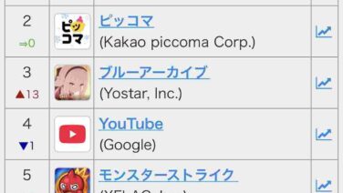 エッヂ ブルアカ、5周年アプデでセルラン3位(12:40)