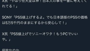 ゲハ Xで有名なプレステ信者さん、PS5値上げの件について物申す www www www www