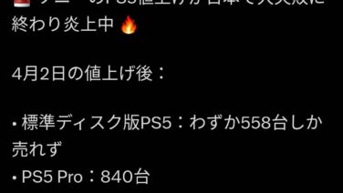 ゲハ 外人「PS5は日本での値上げ後に558台まで落ち込み大失敗に終わった」