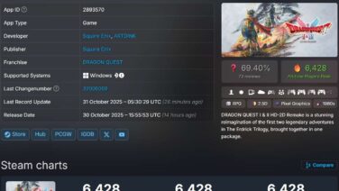 ゲハ    ドラクエ1&2、steamの同接がとんでもない事になるwww
