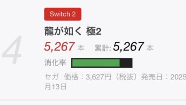 ゲハ 【任豚悲報】Switch2「龍が如く極2」初週5267本で緑茶の爆死www
