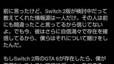 ゲハ Switch2版弥助をリークした海外リーカー「Switch2版GTA6について私にちょっとしたものが届いている」