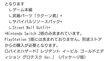 バイオ30周年セットでswitch2に入ってるコンテンツがPS5だと別購入に