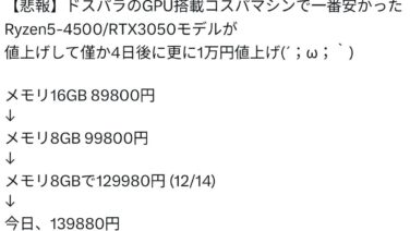 ゲハ PS5の性能以下のゲーミングPC、14万円に、PCのほうが安くで組めるとはなんだったのか😨
