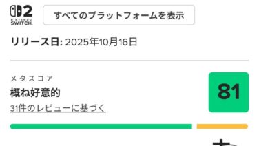 ポケモンレジェンズZA、メタスコア81点!!!