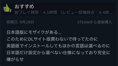 識者「Steamで日本語対応されないゲームは、日本人の厳しすぎるレビューにビビっている」